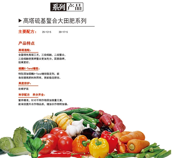 高塔硫基鳌合大田肥采用全自动电脑控制配料,以熔体尿素、磷、钾等原料,经充分混合制浆后,通过高塔专用差动喷浆造粒机,从高塔顶部喷淋而下,经空气冷却造粒,其技术指标达到世界同行先进水平,具有以下优点: