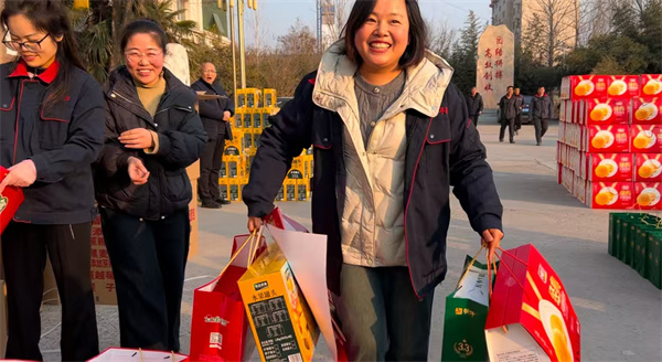 这次福利发放,公司精心筹备,有香肠、牛奶、面包、水果等年货大礼包,还有新春对联。发放现场热闹非凡,员工有序领取,脸上满是幸福。大家都说,这不仅是物质福利,更是对一年努力的认可。“福利太贴心,新一年肯定更有干劲!” 一位员工激动地说。