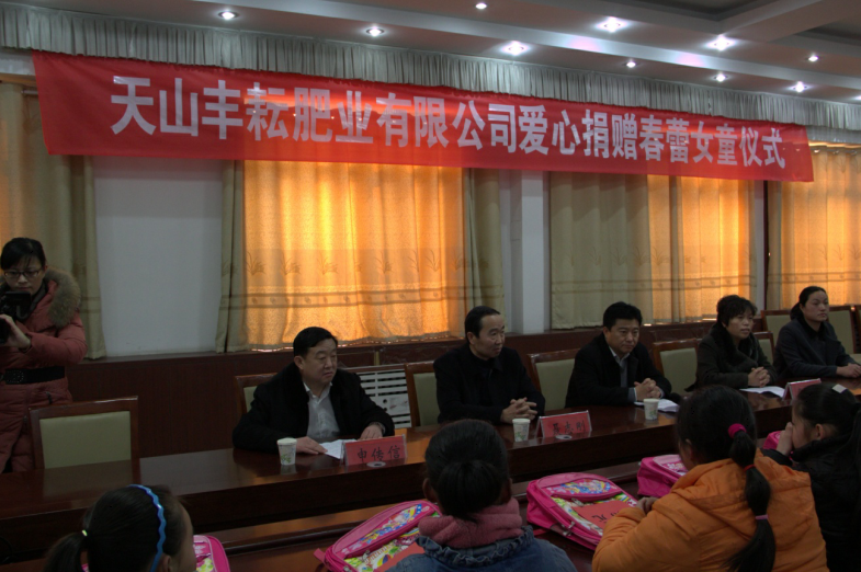 日前,山东天山丰耘生态肥业有限公司举行了爱心捐赠春蕾女童仪式,公司董事长申传信参加了捐赠仪式,为贫困女童发放了书包等学习用品和助学金。此次活动,全县将有100名贫困女童受到捐助。