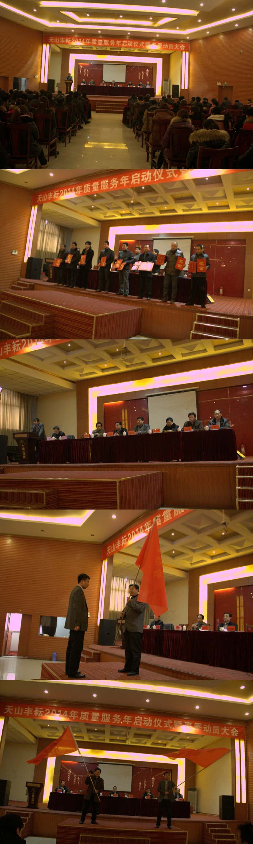 2月9日,山东天山丰耘生态肥业有限公司张灯结彩,隆重召开天山丰耘2014年质量服务年启动仪式暨春季动员大会。大会对公司2013年度在质量服务工作中涌现出来的优秀团队、先进个人进行了表彰,举行了2014年质量服务年启动仪式并为生产、销售部门负责人进行了授旗,大会还对公司春季各项工作进行了动员部署。公司来自各部门700余名员工参加了大会。
