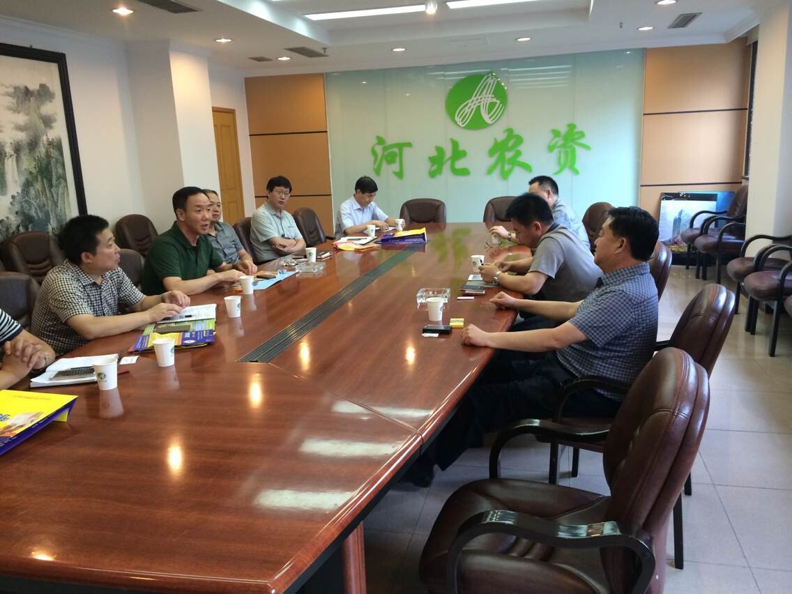 图为山东天山丰耘生态肥业有限公司董事长申传信与河北省农资公司有关领导进行座谈。双方对建立战略合作关系、实现双赢充满信心。